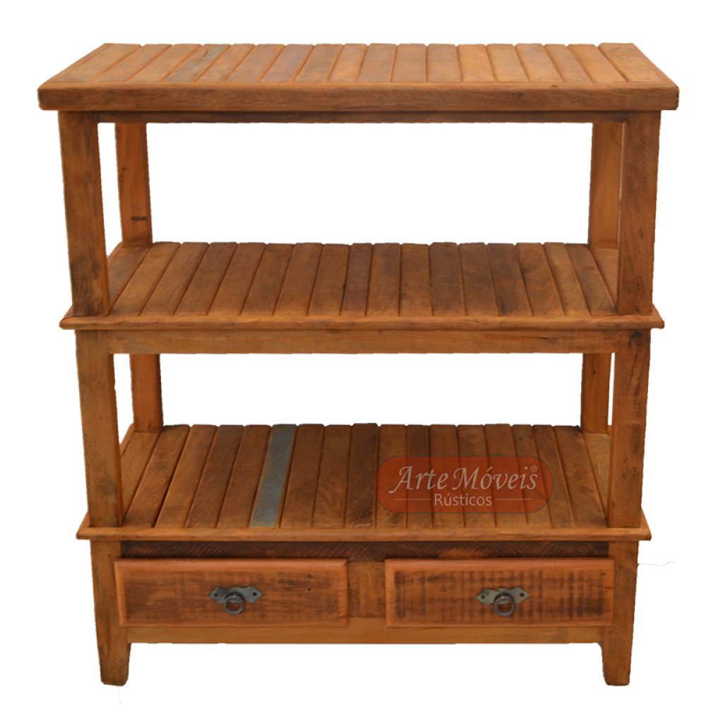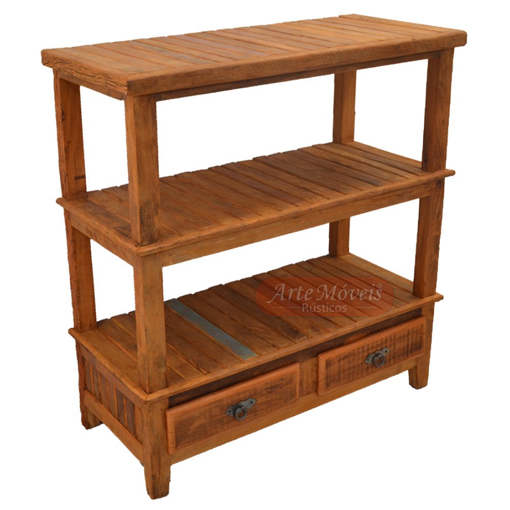 Aparador ripado com três tampos e duas gavetas na parte inferior, trazendo assim um amplo espaço interno ao móvel, e tudo isso trabalhado junto a madeira de demolição Peroba Rosa, traz um requinte único. A Peroba Rosa tem uma formação mais resistente ao tempo que a maioria das outras madeiras. O Aparador tem, portanto, a aliança da durabilidade e garantia da Peroba Rosa, com a tranquilidade de ser fruto de demolição de antigas construções, ou seja, não são móveis frutos de derrubadas de árvores, sendo assim, ele é ecologicamente corretos.